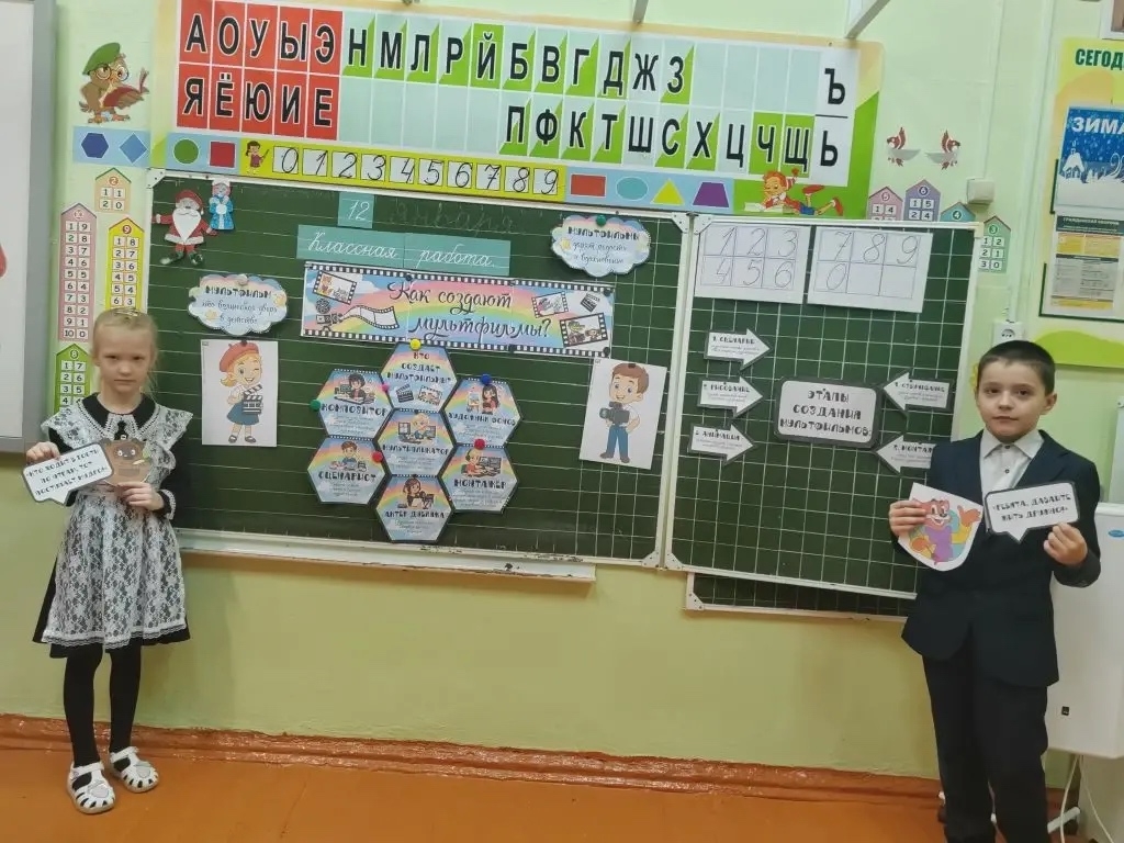 Сегодня, 12 января, первый учебный день 2026 года начался с торжественной церемонии поднятия государственных флагов и исполнения гимнов Российской Федерации и Республики Башкортостан, а также с внеурочного занятия «Разговоры о важном», посвящённого теме «Как создают мультфильмы?».
