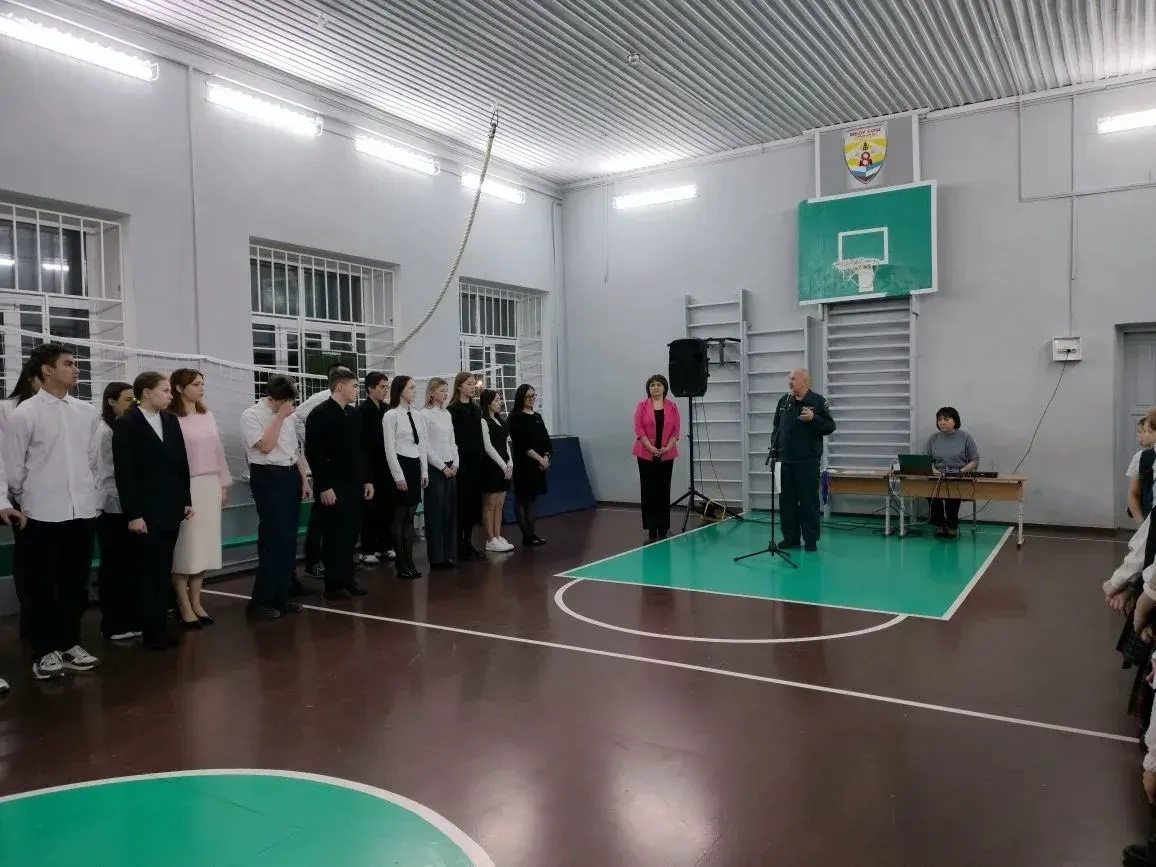 Общешкольная линейка, посвящённая окончанию второй четверти